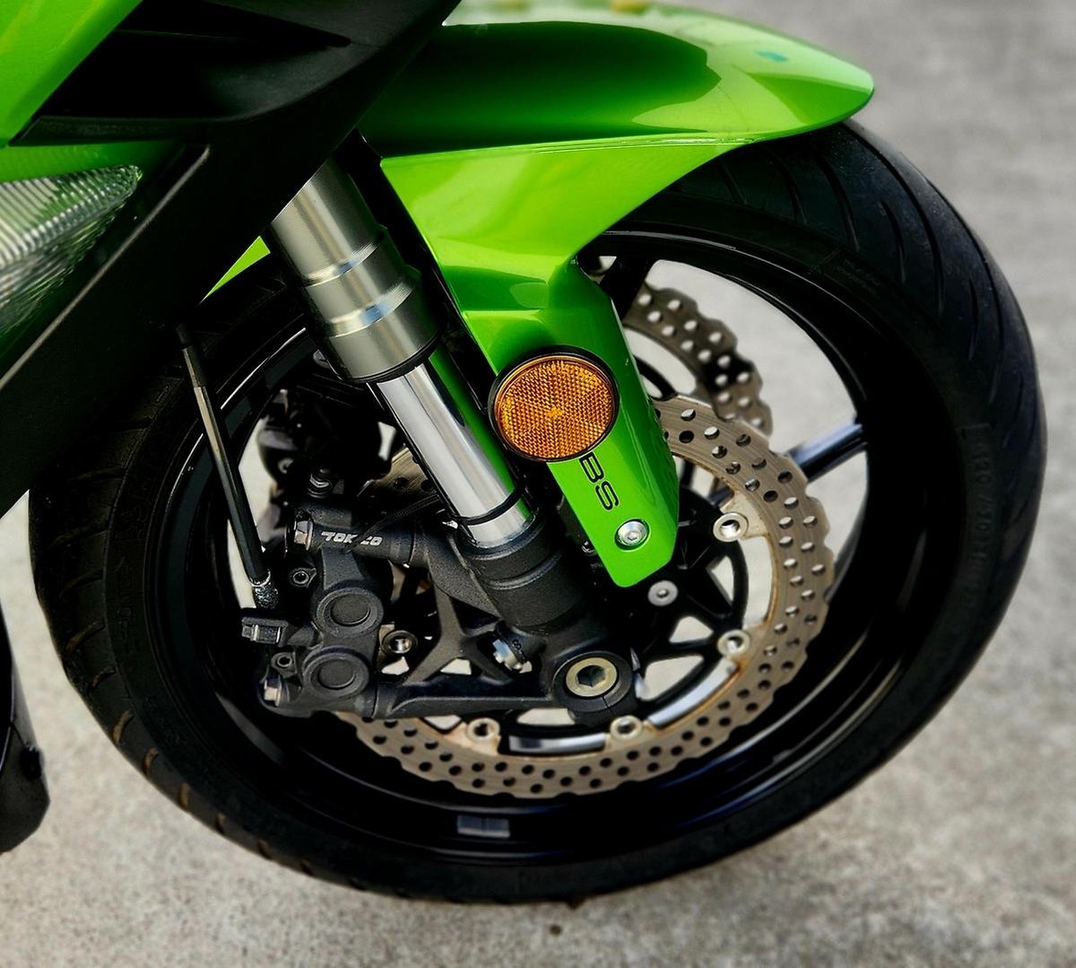- Front Brake Description: Twin semi-floating petal discs, Radial mounted calipers, ABS