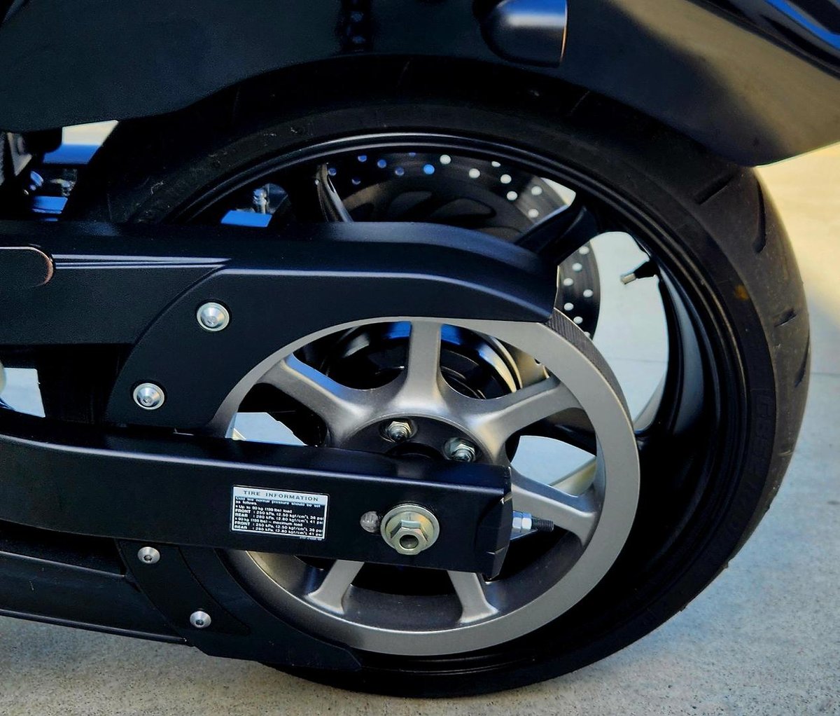 - Rear Tyre: 210/40-R18" (73H) Tubeless